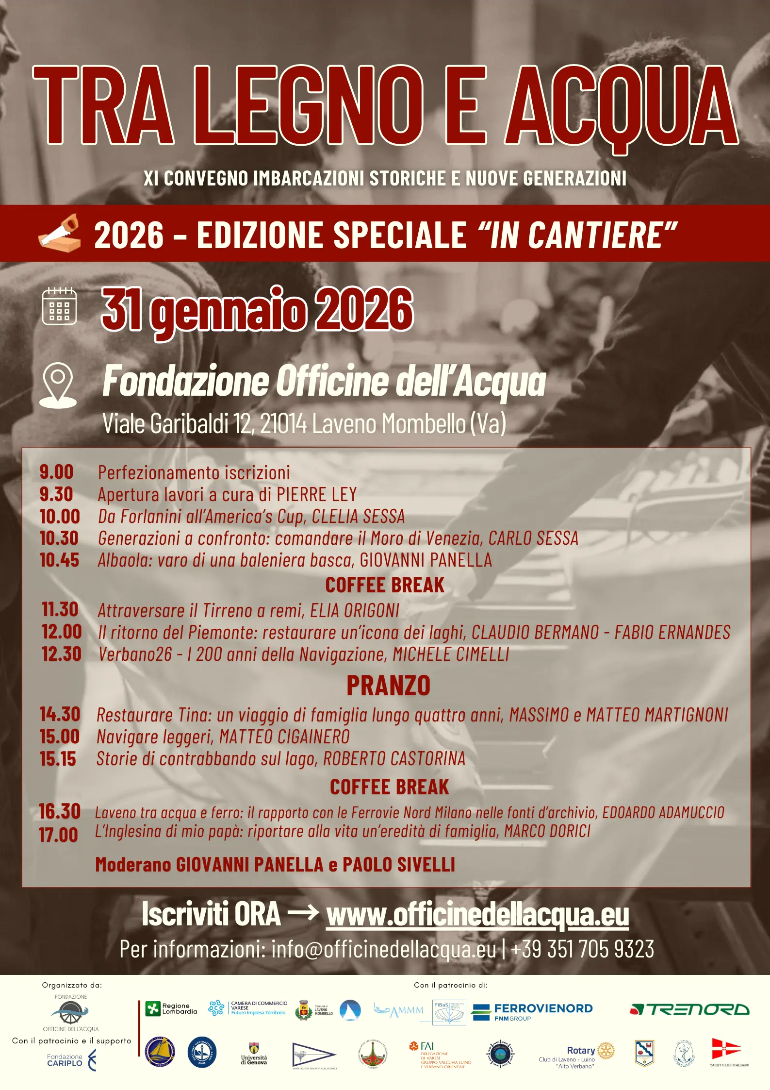 Partecipa al principale convegno nazionale sul patrimonio nautico storico. Sabato 31 gennaio 2026 a Laveno Mombello: conferenze, laboratori e restauri in corso tra tradizione e innovazione.
